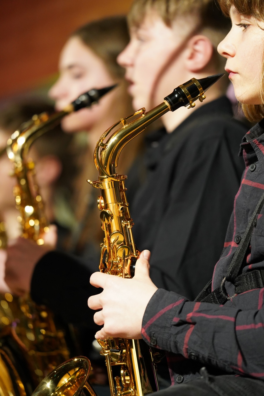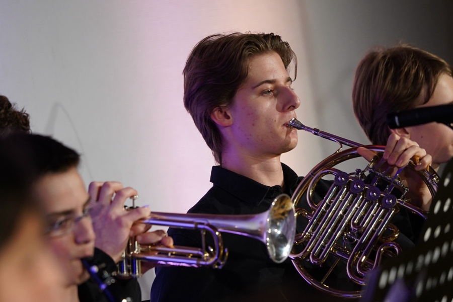 Wegweisend und stilbildend war auch das 1958er Jazzalbum „Milestones“ von Miles Davis. Eine Essenz des Modern Jazz und zugleich der Beginn des Modal Jazz. Das Titelstück wurde von der Big Band der Schule als Intro ausgesucht. Wunderbar cool intoniert und von einem spannungsgeladenen Minimalismus, lässt sich das Quintett-Stück auch in großer Besetzung gut hören. Unter der Leitung von Bernhard König zog die Band alle Register, als Sängerin war Mara Fritz mit dabei. Finale war Cyndi Laupers ikonisches „Time After Time“. Miles Davis nahm den Song 1985 auf. Damit schloss sich der Kreis, begleitet von einem langen und gerechtfertigten Schlussapplaus in der AKG-Mensa.
