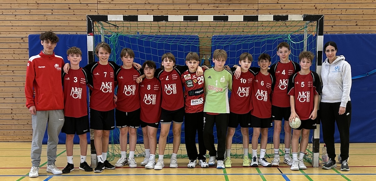 Mit einer starken und geschlossenen Mannschaftsleistung präsentierte sich die Handballmannschaft des AKG beim jüngsten Regionalentscheid Handball. Dabei musste das Team kurzfristig einen verletzungsbedingten Ausfall verkraften: Justus Ernst konnte nicht antreten, für ihn rückte Leo Ulber ins Team nach und fügte sich nahtlos ein.