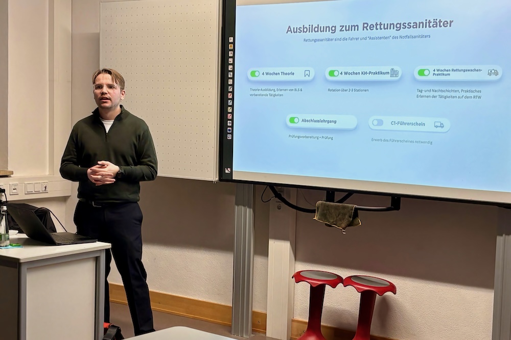 Nach dem praktischen Jahr startet das fünfte Semester im Medizinstudium mit der Einführung in die klinische Medizin. Die Klinikphase erstreckt sich bis zum zehnten Semester und umfasst Blockpraktika, um den medizinischen Alltag besser kennenzulernen. Frau Doktor verschreibt interessierten Jugendlichen nicht nur eine gute Lern-Ausdauer und ein hohes Maß an Motivation, sondern auch die nötige Portion Selbstreflexion: Kann man sich ein Studium – auch ohne Bafög oder Elternförderung – finanziell leisten? Denn eine reine Eigenfinanzierung sei enorm schwierig. Wenn man unbedingt will und kann, dann sei Humanmedizin der Traumberuf schlechthin. „Man muss dafür brennen und gleichzeitig darauf achten, nicht auszubrennen“, berichtet Doris Roth aus dem Krankenhausalltag.