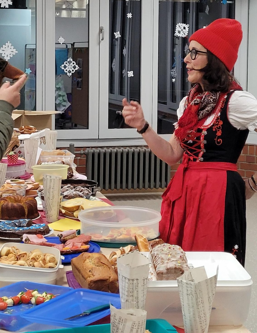 In der Turnhalle konnten aus Märchen bekannte Bewegungsabläufe direkt ausprobiert werden, sodass die Strapazen mancher Märchenfigur am eigenen Leib spürbar wurden. Bei den lustigen Mitmach-Lesespielen stellte sich schnell heraus, dass die Prinzessin lieber mit dem Prinzen abhauen wollte, als bei ihrem grimmigen Vater und den niesenden und hexenden Schwestern zu bleiben. Das „Café Knusperhäuschen“ glich wieder einmal eher dem Schlaraffenland: Berge von Brezeln, essbare Froschkönige, die tollsten Kuchen- und Gebäckkreationen und auch einige besondere kulinarische Leckerbissen aus anderen Ländern waren dort zu verspeisen, dafür hatten die Eltern der Fünftklässler reichlich gesorgt.