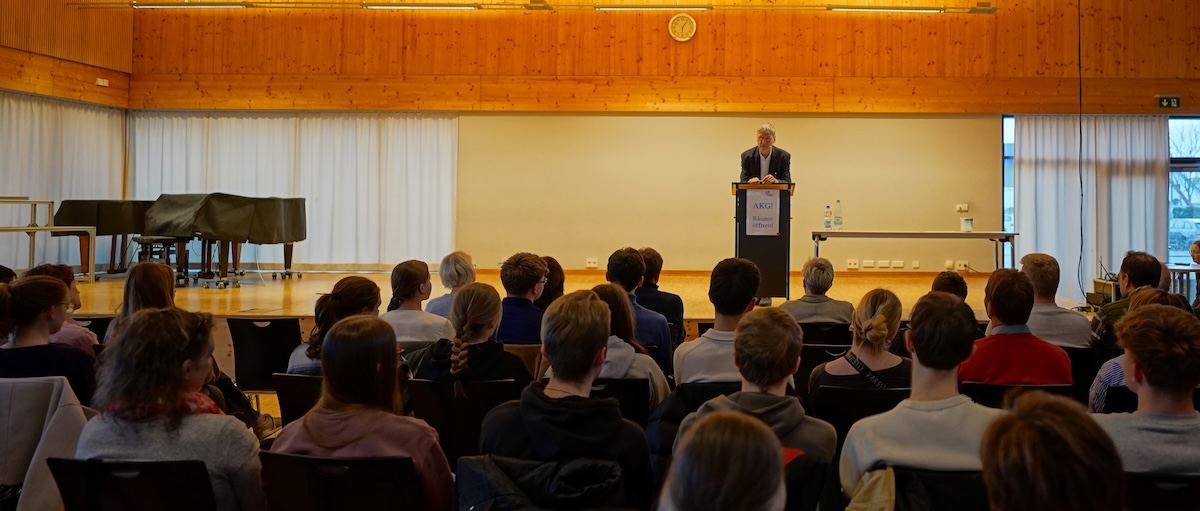 Der Krieg könne noch Jahre dauern, so Sapper vor zahlreichen jungen Zuhörern beim AKG-Forum im Alten Kurfürstlichen Gymnasium, wo er die Hintergründe und aktuellen Entwicklungen ausleuchtete und klar Position bezog: ohne die Unterstützung der europäischen Nachbarn habe es die Ukraine schwer, aus dem Schwitzkasten des großen imperialistischen Nachbarn herauszukommen. Die Rolle Deutschlands kommentierte er kritisch: „Zu spät, zu zögerlich, zu wenig“, sagte er und verwies auf die anfängliche Zurückhaltung bei der Frage jeglicher Waffenlieferungen.